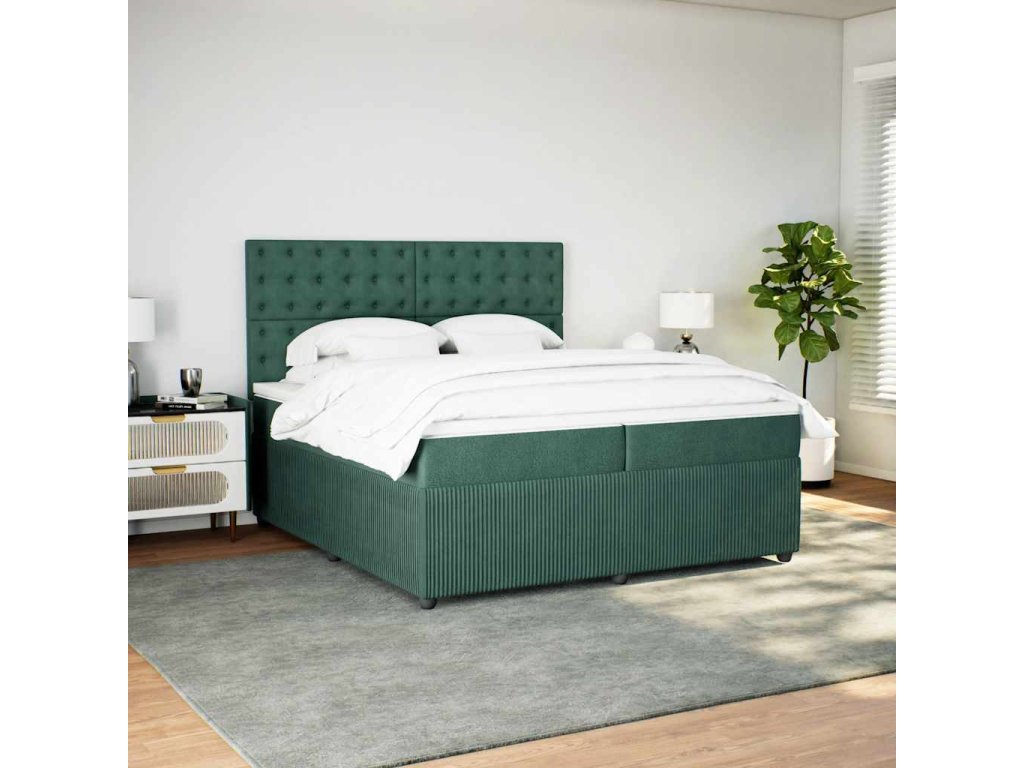 vidaXL Posteľný rám boxsping s matracom tmavozelený 200x200 cm zamat