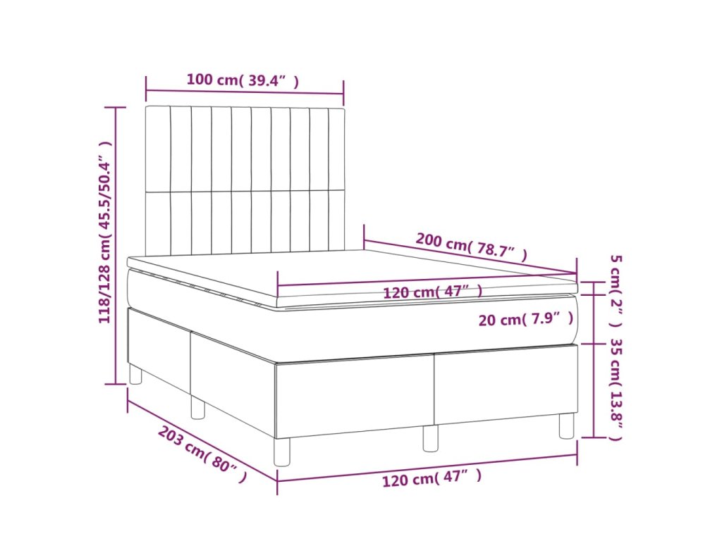 vidaXL Posteľný rám boxspring s matracom čierny 120x200 cm zamat