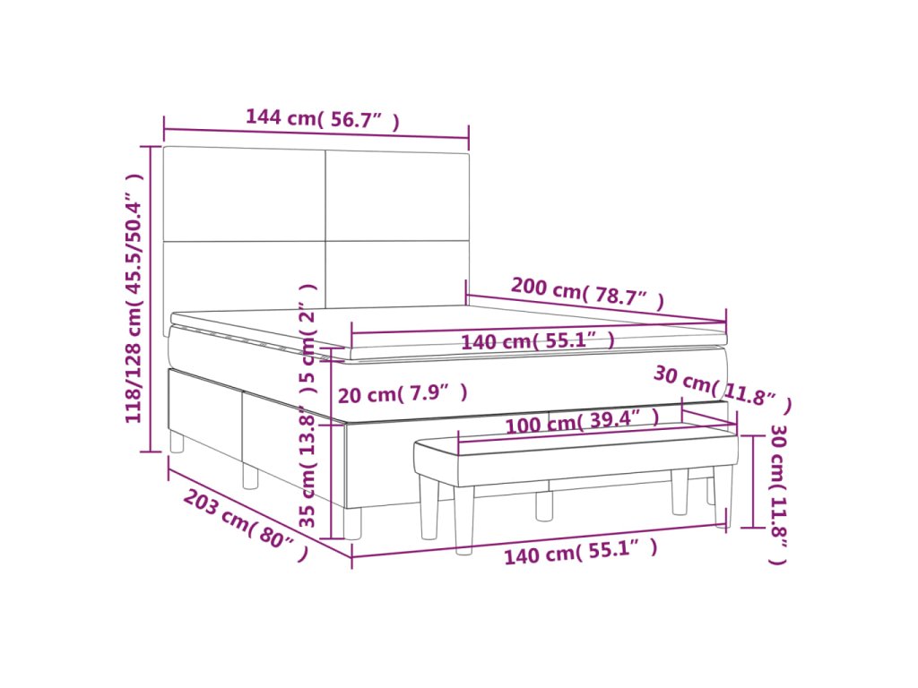 - Rozmery: 203 x 144 x 118/128 cm (D x Š x V)