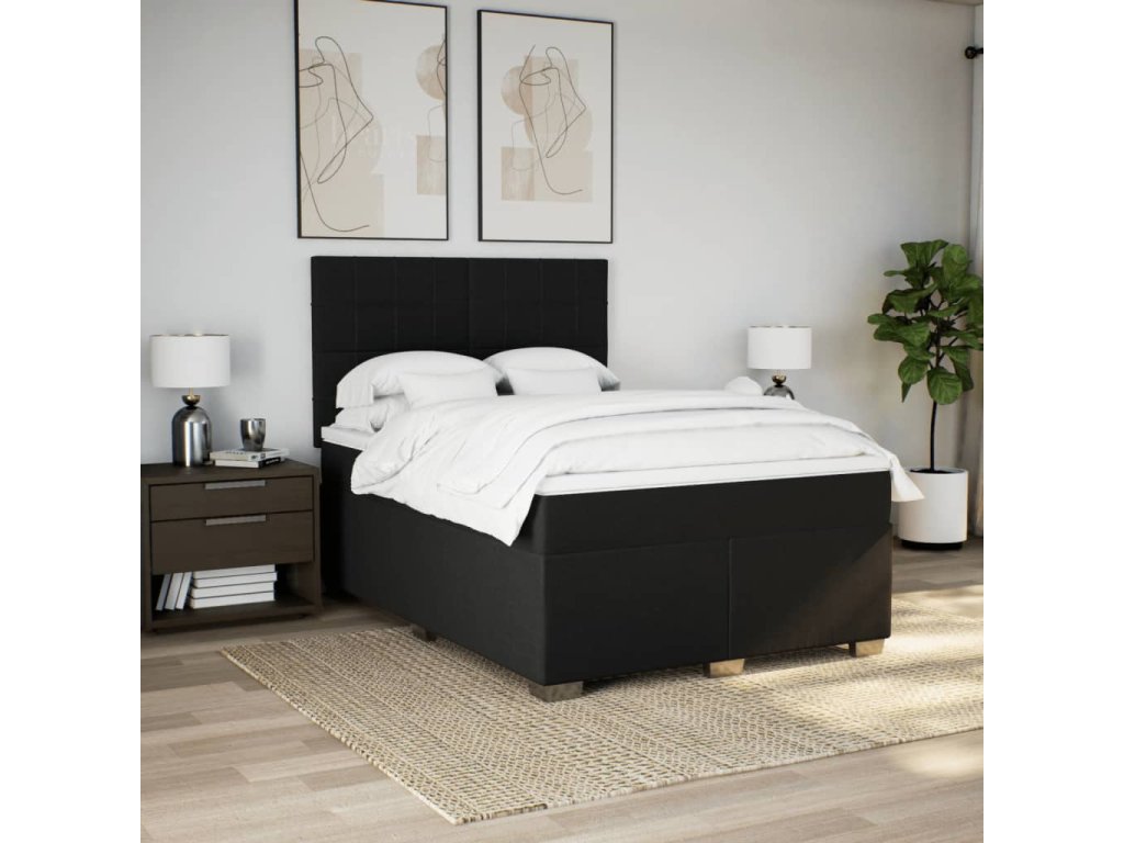 vidaXL Posteľný rám boxspring s matracom čierny 140x200 cm látka