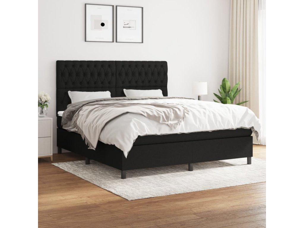 vidaXL Posteľný rám boxspring s matracom čierny 180x200 cm látka