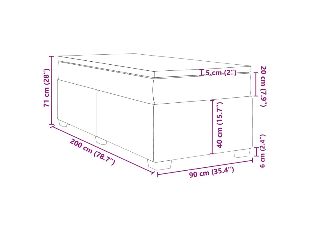 - Rozmery: 90 x 200 x 20 cm (D x Š x V)