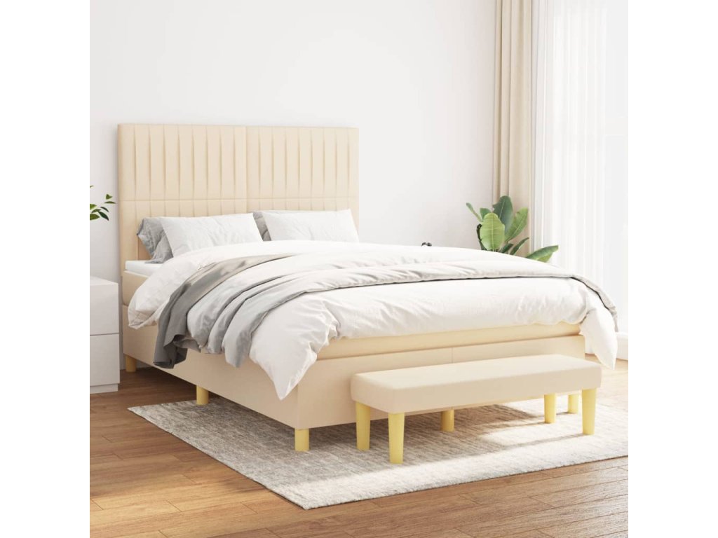 vidaXL Posteľný rám boxspring s matracom krémový 140x200 cm látka