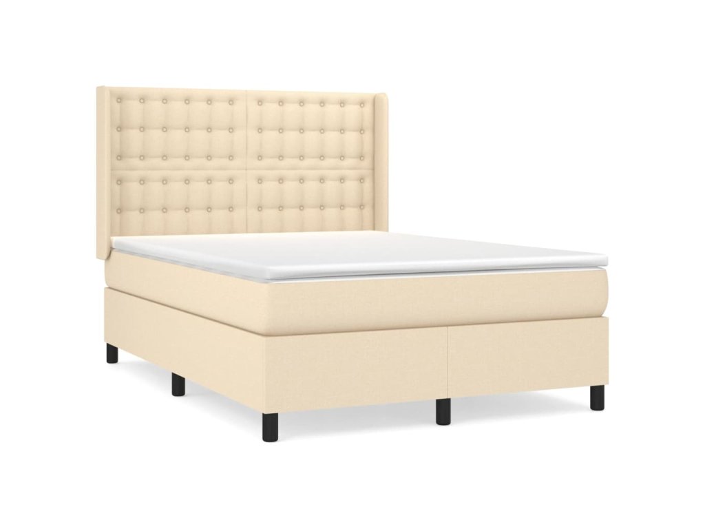vidaXL Posteľný rám boxspring s matracom krémový 140x200 cm látka