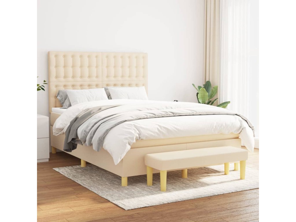 vidaXL Posteľný rám boxspring s matracom krémový 140x200 cm látka