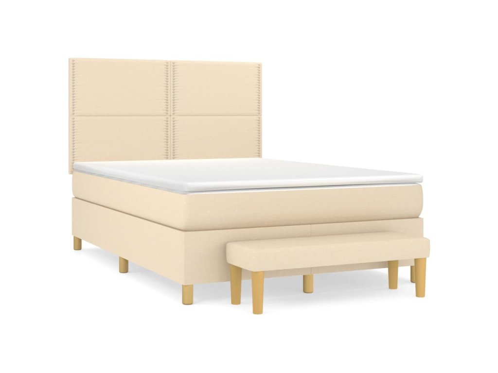 vidaXL Posteľný rám boxspring s matracom krémový 140x200 cm látka