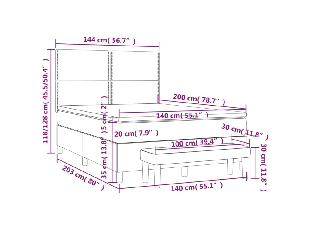 - Rozmery: 203 x 144 x 118/128 cm (D x Š x V)