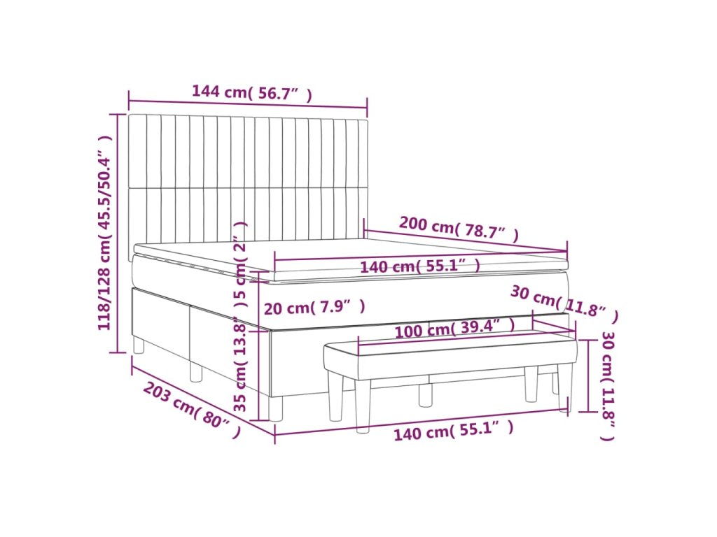 - Rozmery: 203 x 144 x 118/128 cm (D x Š x V)
