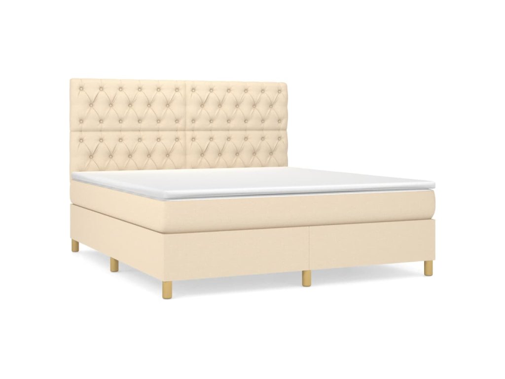 vidaXL Posteľný rám boxspring s matracom krémový 160x200 cm látka