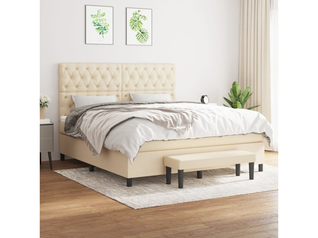 vidaXL Posteľný rám boxspring s matracom krémový 160x200 cm látka