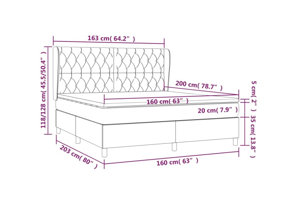 - Rozmery: 203 x 163 x 118/128 cm (D x Š x V)
