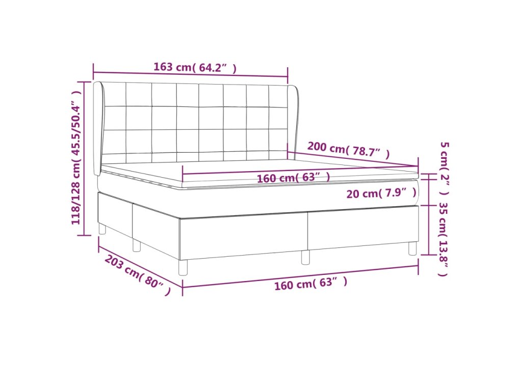 - Rozmery: 203 x 163 x 118/128 cm (D x Š x V)