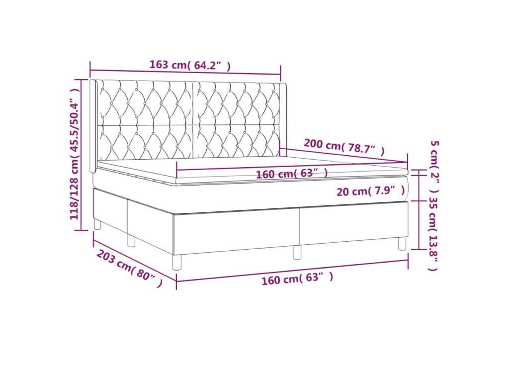 - Rozmery: 203 x 163 x 118/128 cm (D x Š x V)