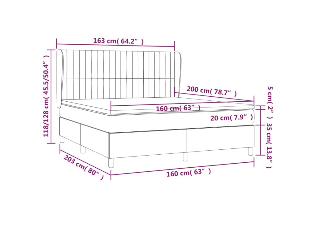 vidaXL Posteľný rám boxspring s matracom krémový 160x200 cm látka