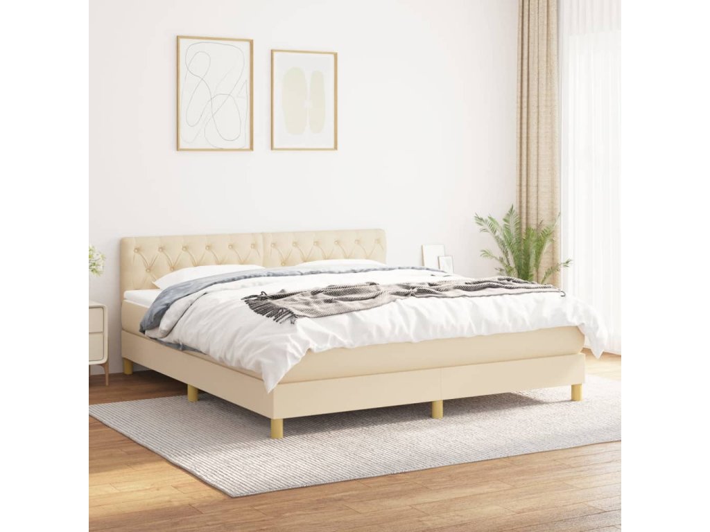 vidaXL Posteľný rám boxspring s matracom krémový 160x200 cm látka
