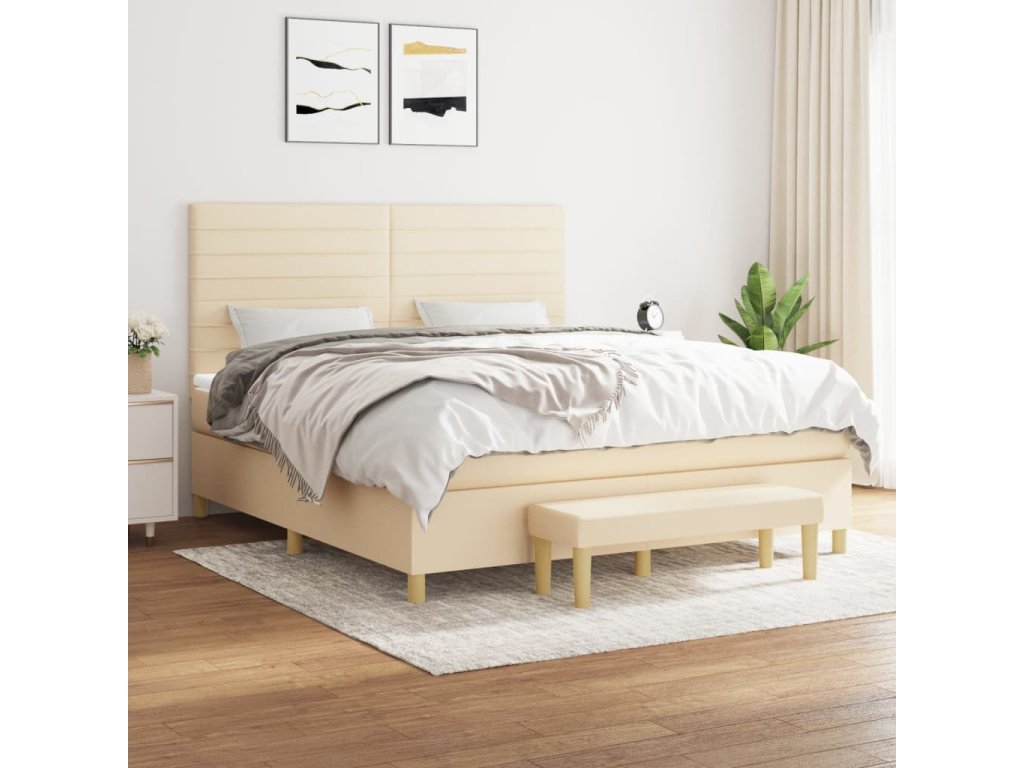 vidaXL Posteľný rám boxspring s matracom krémový 160x200 cm látka
