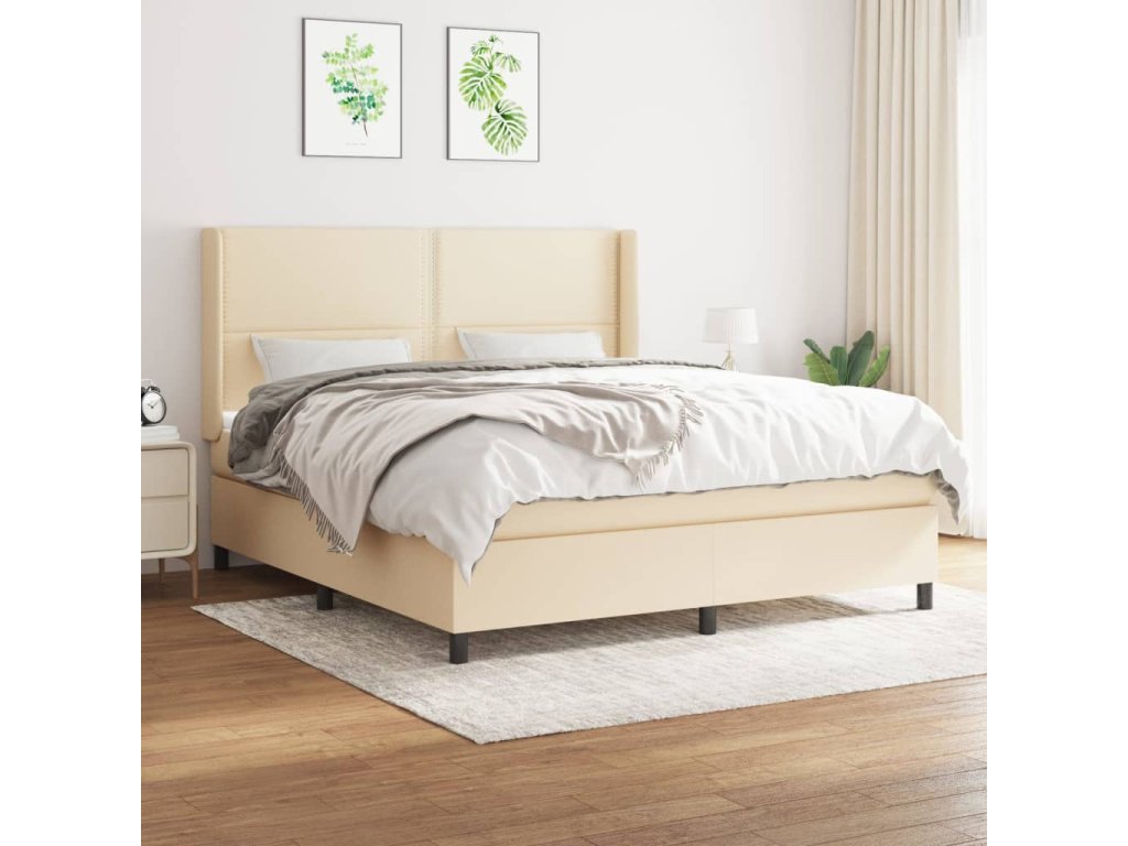 vidaXL Posteľný rám boxspring s matracom krémový 180x200 cm látka