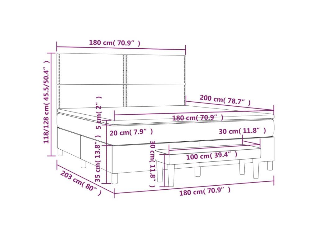 - Rozmery: 203 x 180 x 118/128 cm (D x Š x V)