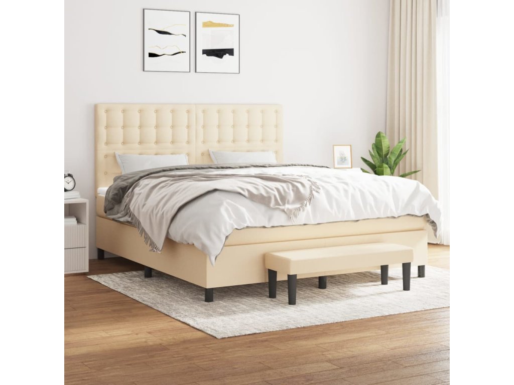 vidaXL Posteľný rám boxspring s matracom krémový 180x200 cm látka