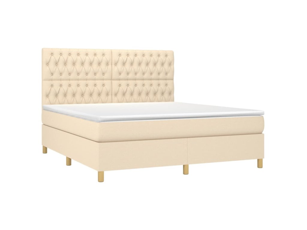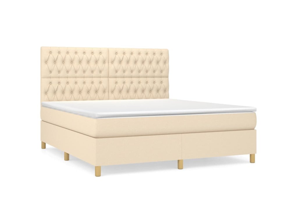 vidaXL Posteľný rám boxspring s matracom krémový 180x200 cm látka