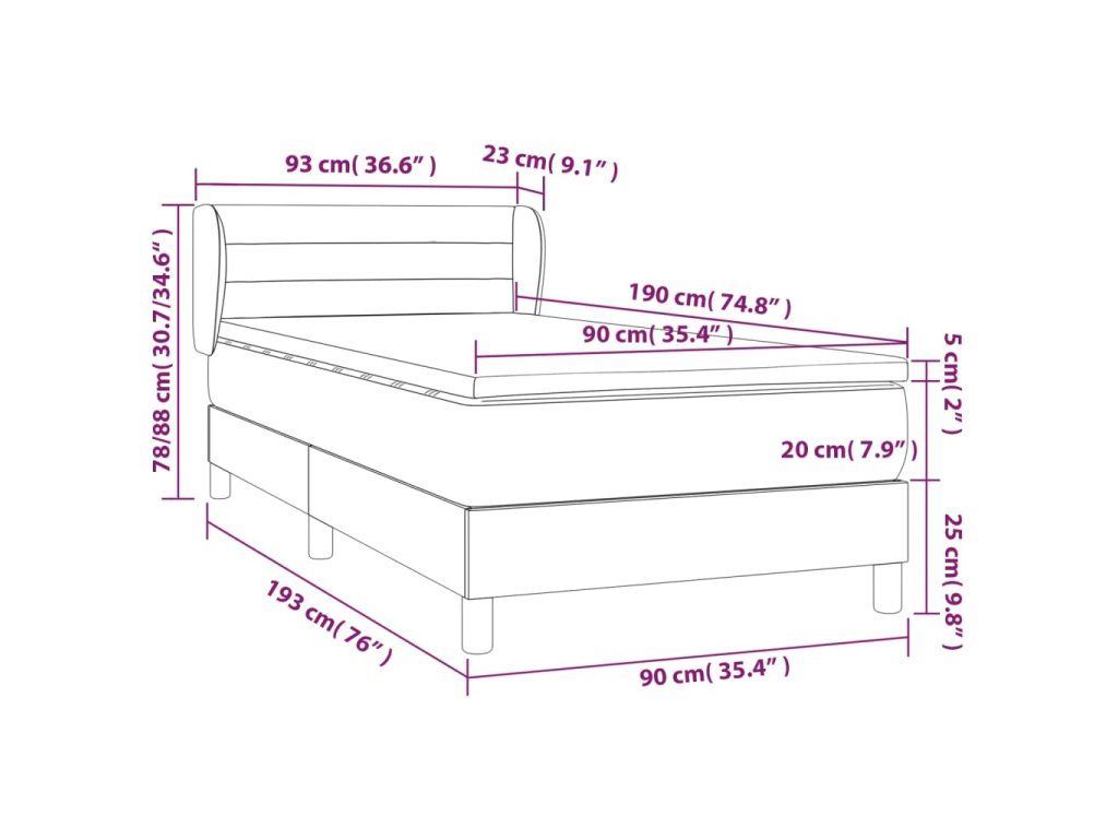 vidaXL Posteľný rám boxspring s matracom krémový 90x190 cm látka