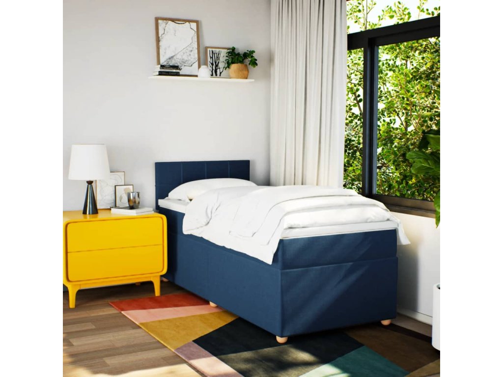 vidaXL Posteľný rám boxspring s matracom modrý 90x190 cm látka