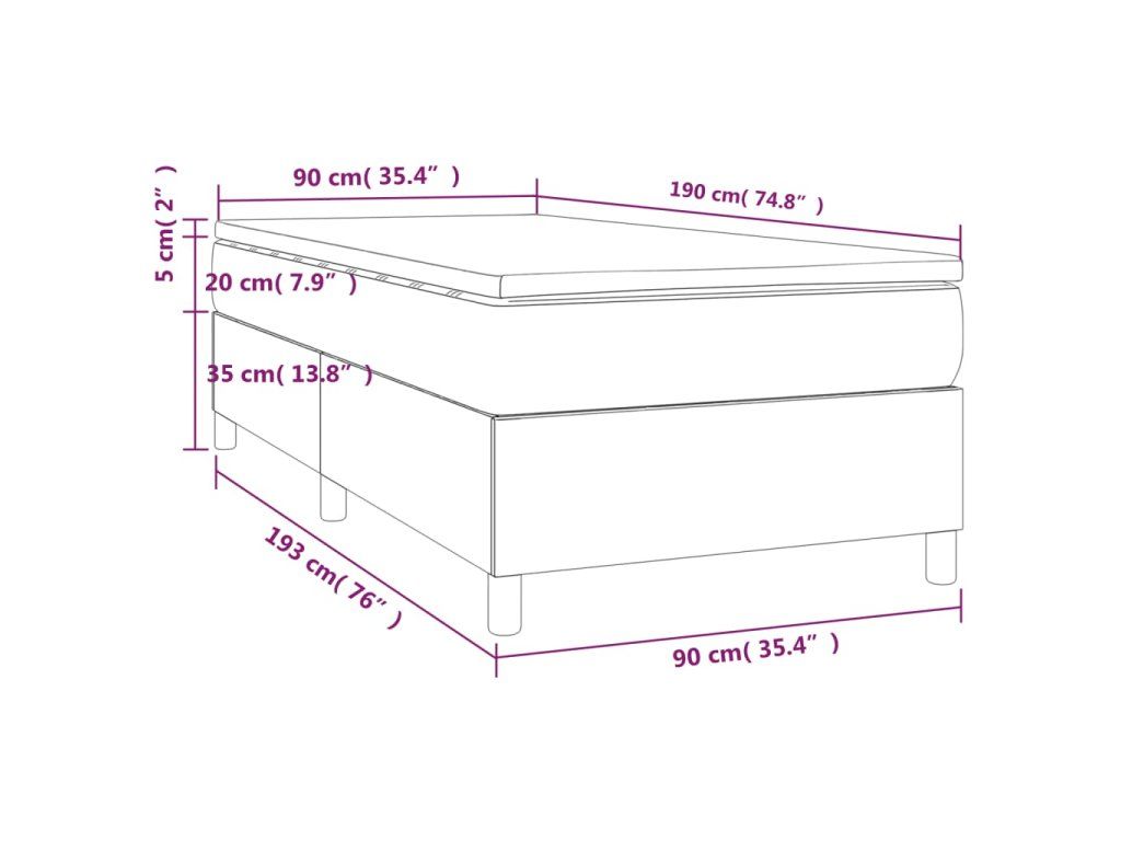- Rozmery: 90 x 190 x 20 cm (Š x D x V)