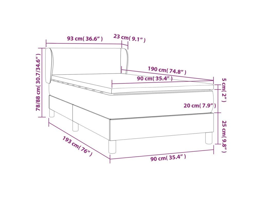 vidaXL Posteľný rám boxspring s matracom modrý 90x190 cm látka