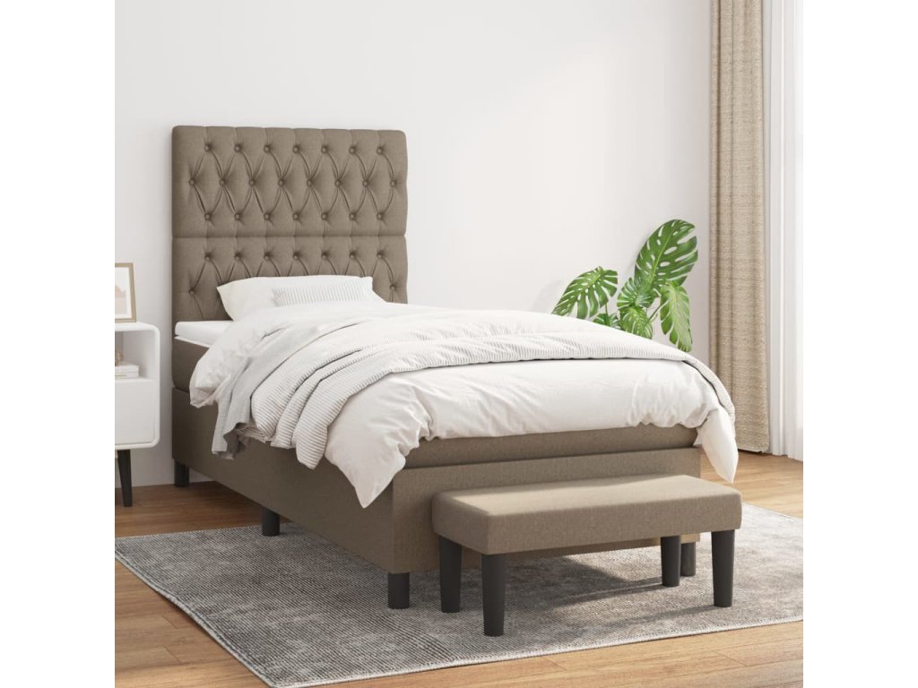vidaXL Posteľný rám boxspring s matracom sivohnedý 90x190 cm látka