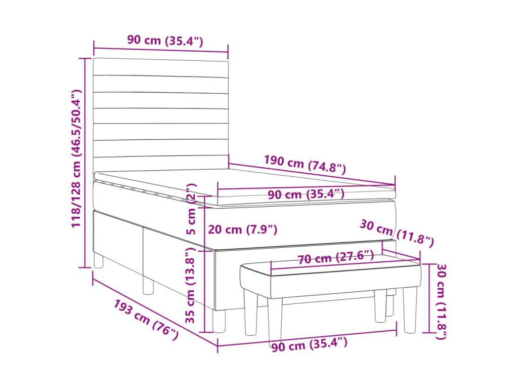 vidaXL Posteľný rám boxspring s matracom sivohnedý 90x190 cm látka