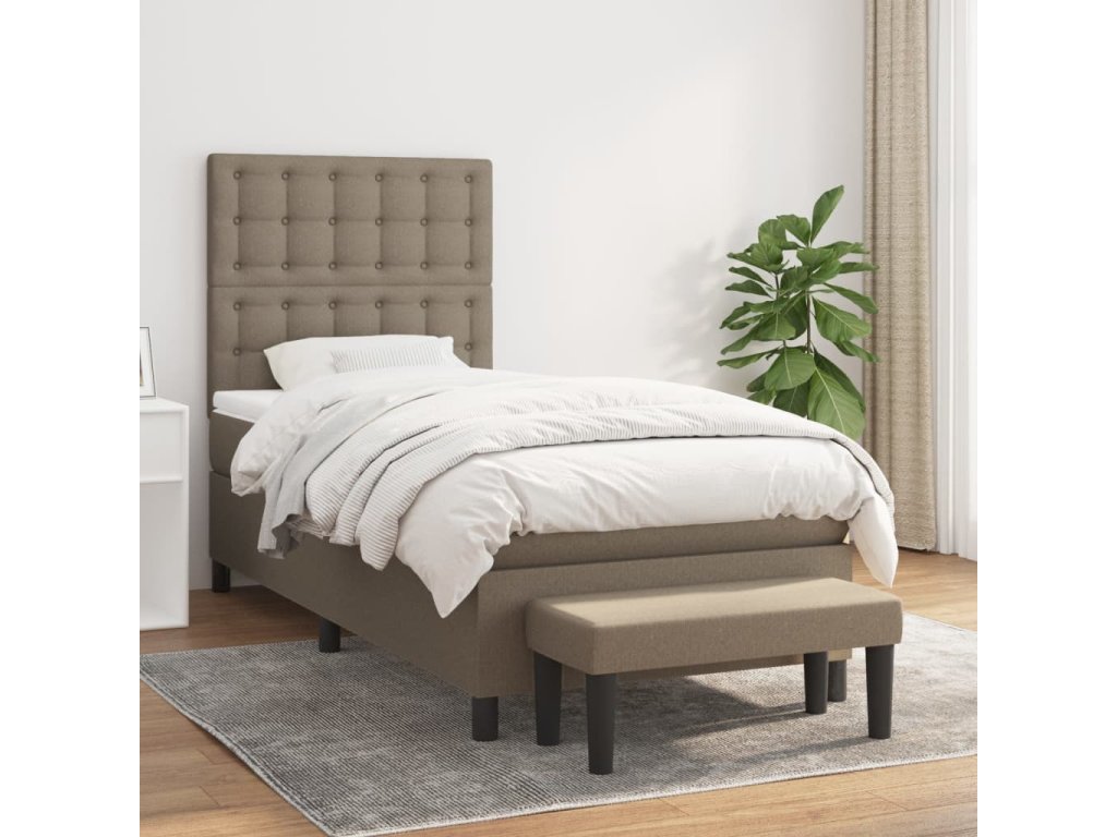 vidaXL Posteľný rám boxspring s matracom sivohnedý 90x190 cm látka
