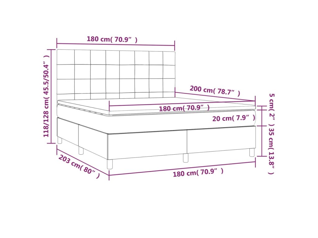 vidaXL Posteľný rám boxspring s matracom tmavosivý 180x200 cm zamat