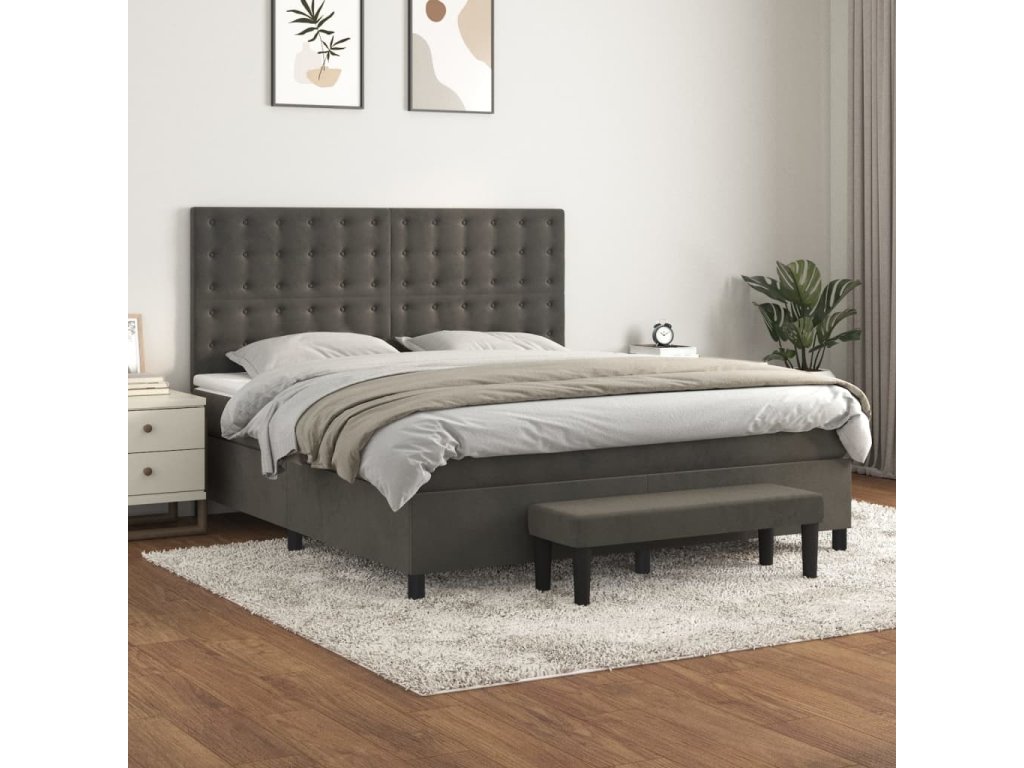 vidaXL Posteľný rám boxspring s matracom tmavosivý 180x200 cm zamat