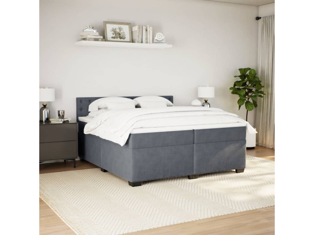 vidaXL Posteľný rám boxspring s matracom tmavosivý 200x200 cm zamat