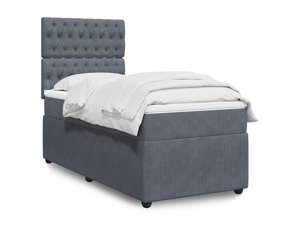 vidaXL Posteľný rám boxspring s matracom tmavosivý 90x200 cm zamat