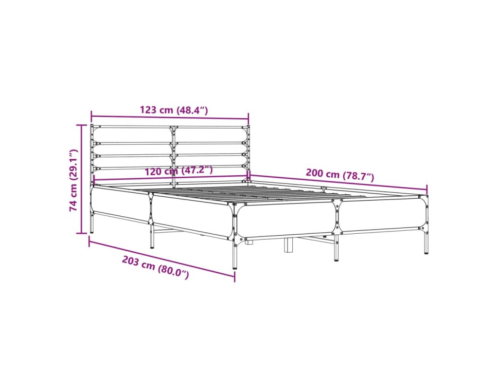 vidaXL Posteľný rám čierny 120x200 cm kompozitné drevo a kov