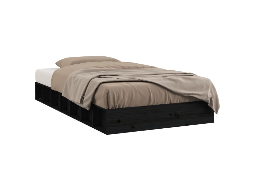 vidaXL Posteľný rám čierny 75x190 cm malé jednolôžko masívne drevo