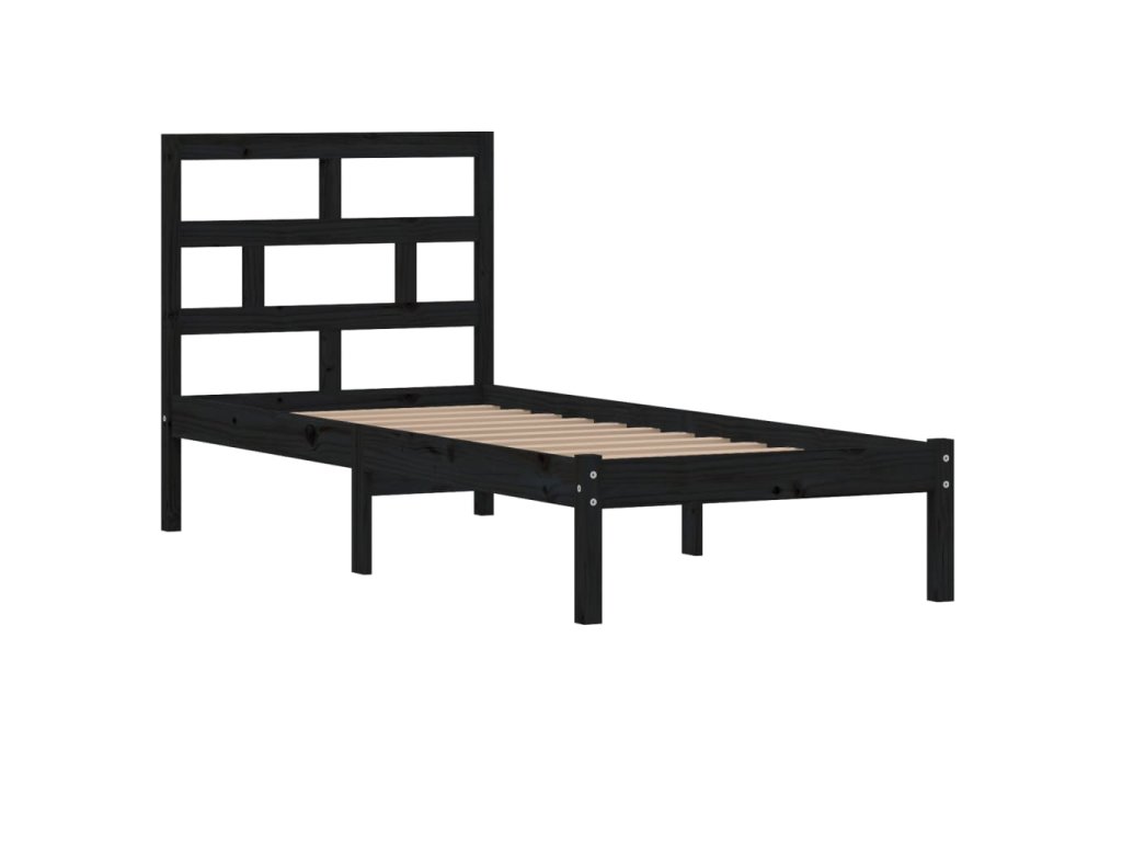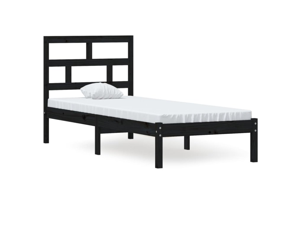 vidaXL Posteľný rám čierny 75x190 cm malé jednolôžko masívne drevo