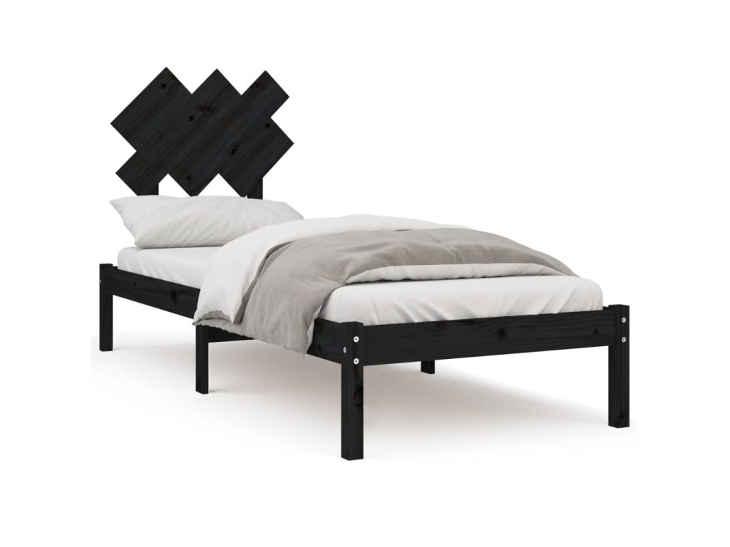 vidaXL Posteľný rám čierny 75x190cm 2FT6 malé jednolôžko masívne drevo