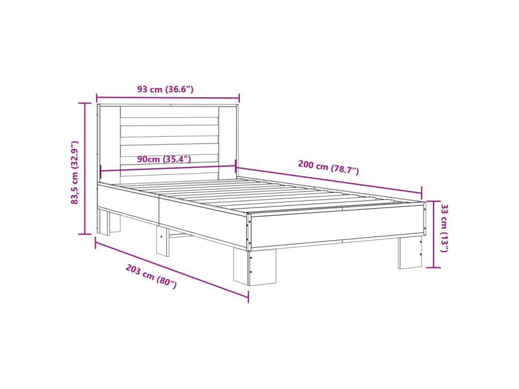 vidaXL Posteľný rám čierny 90x200 cm kompozitné drevo a kov