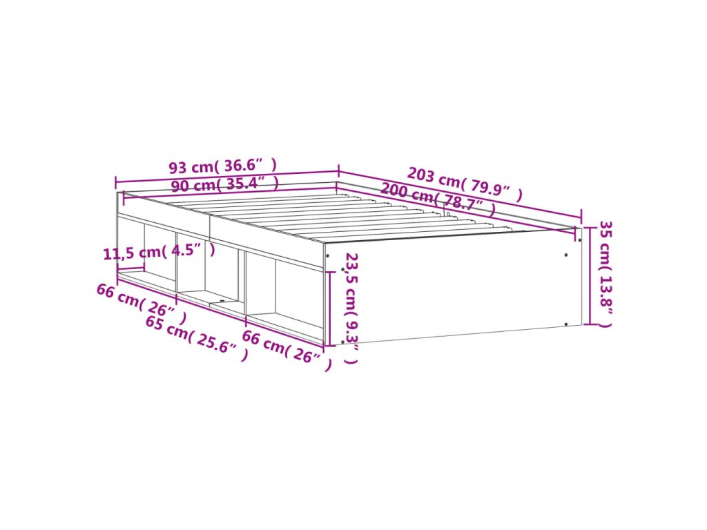 - Celkové rozmery: 203 x 93 x 35 cm (D x Š x V)