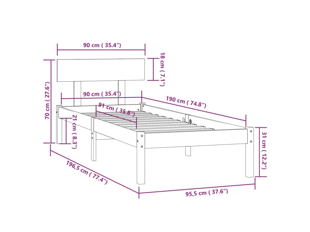 90 x 190 cm