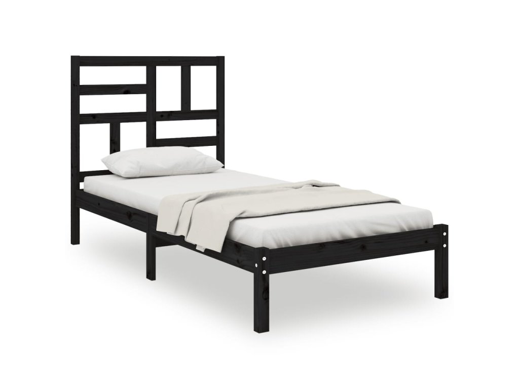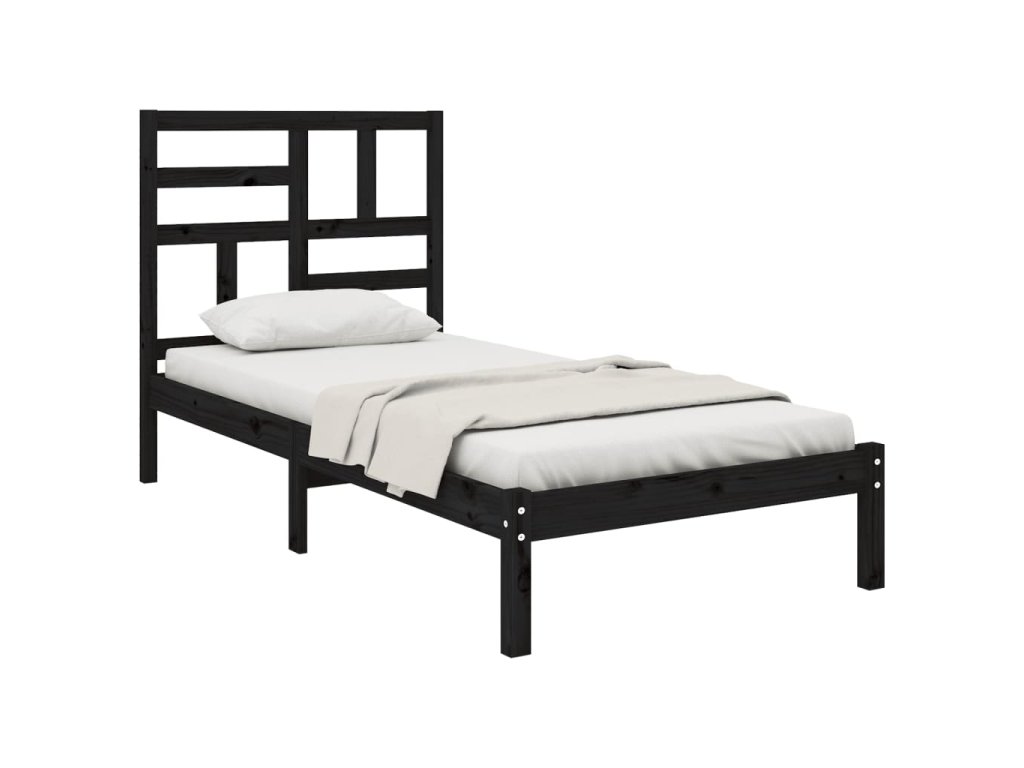 vidaXL Posteľný rám čierny drevený masív 75x190cm malé jednolôžko