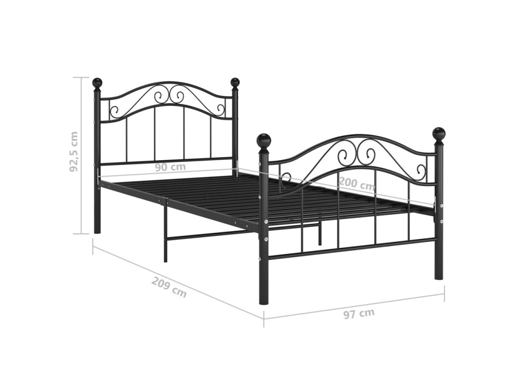 vidaXL Posteľný rám čierny kov 90x200 cm