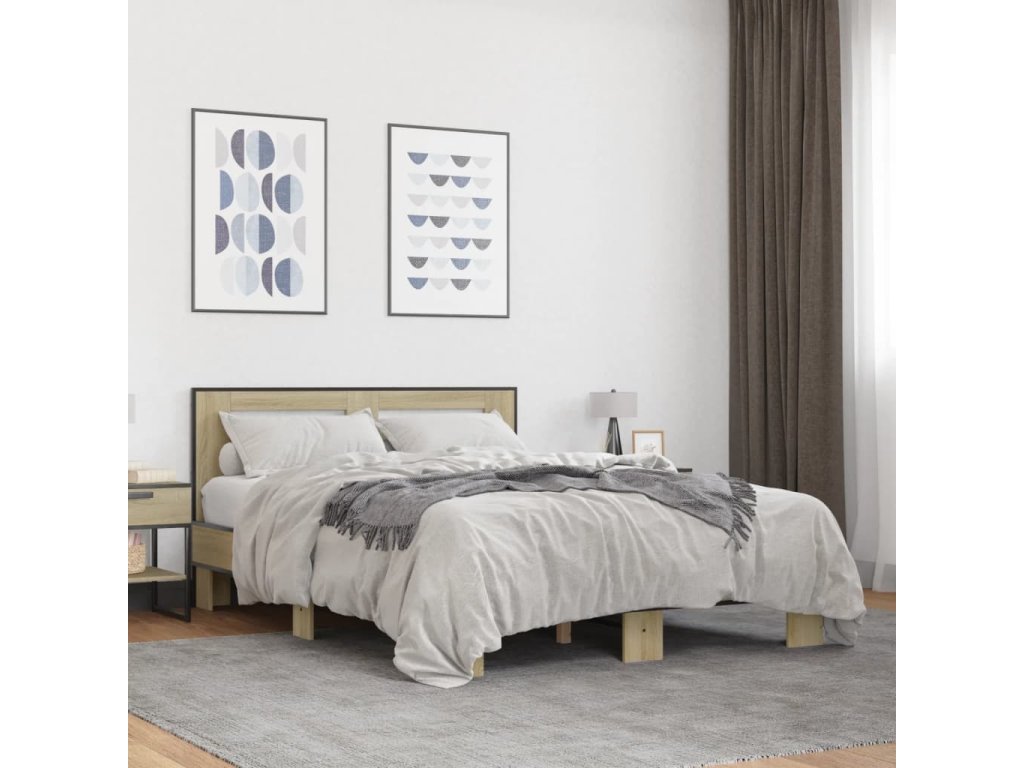 vidaXL Posteľný rám dub sonoma 120x190 cm kompozitné drevo a kov