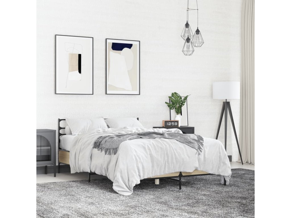 vidaXL Posteľný rám dub sonoma 140x190 cm kompozitné drevo a kov