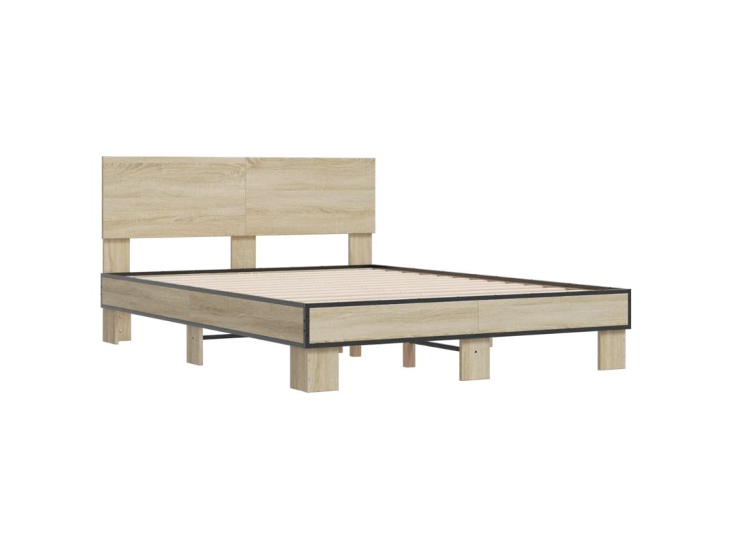 vidaXL Posteľný rám dub sonoma 140x200 cm kompozitné drevo a kov