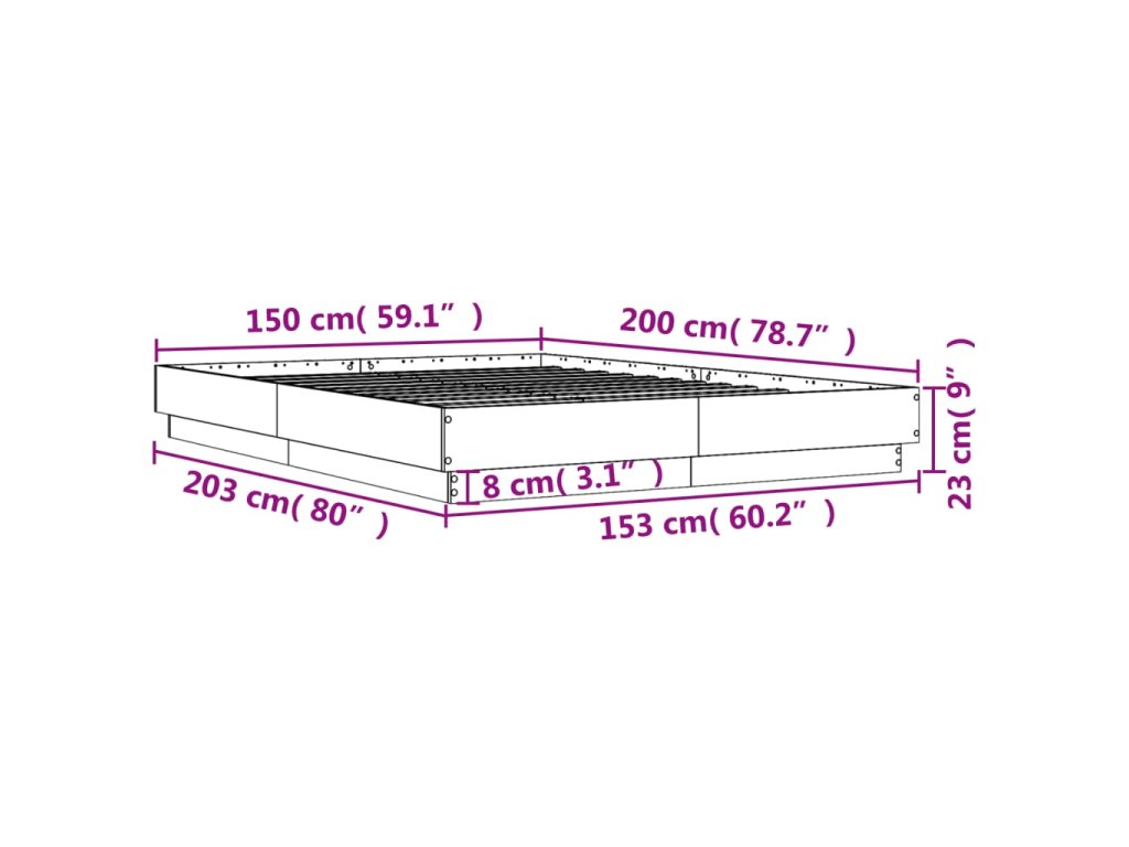 vidaXL Posteľný rám dub sonoma 150x200 cm kompozitné drevo