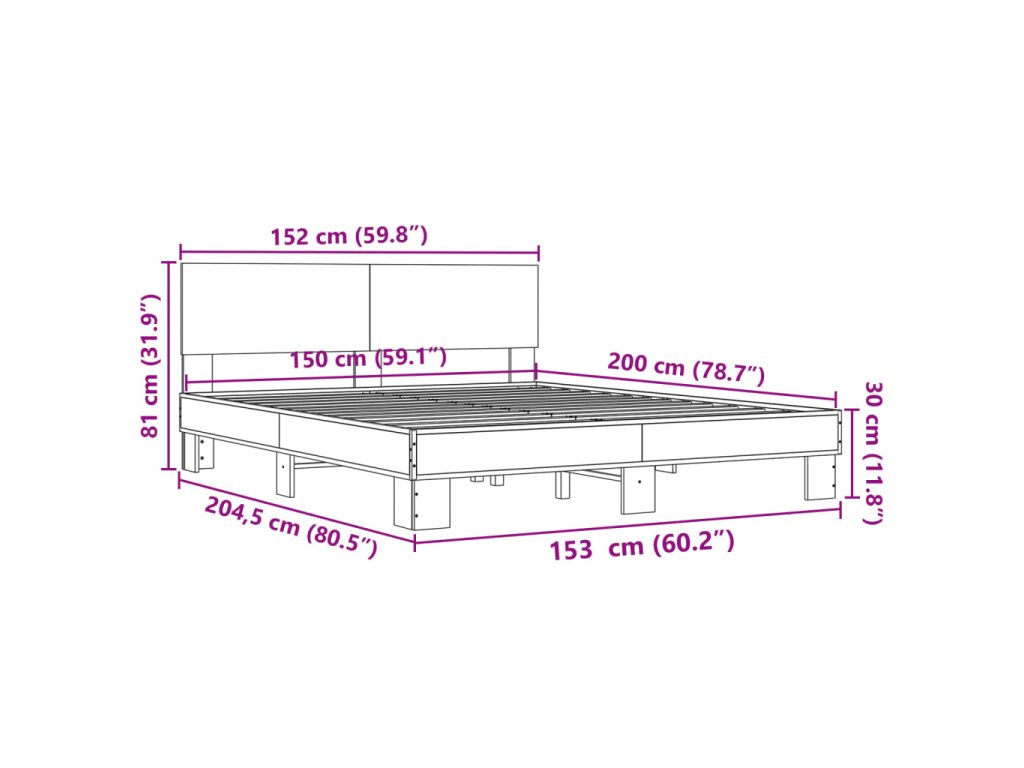 vidaXL Posteľný rám dub sonoma 150x200 cm kompozitné drevo a kov