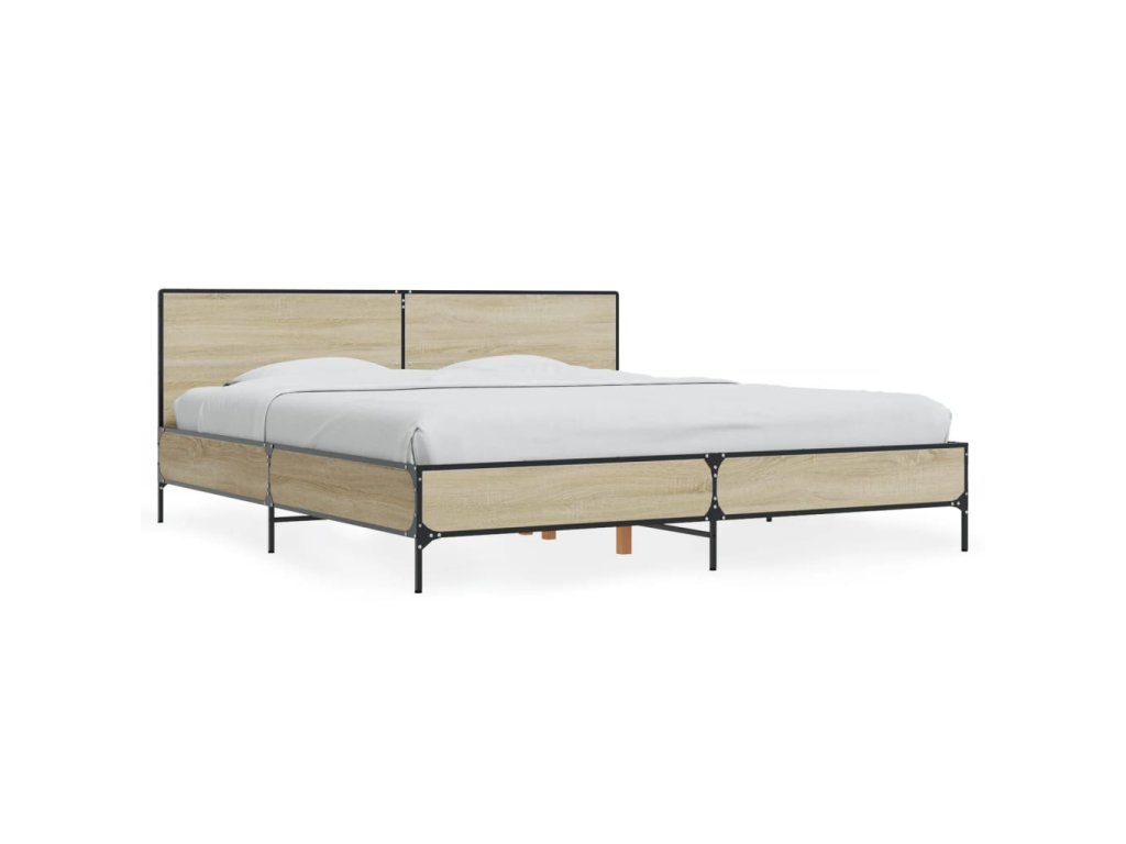 vidaXL Posteľný rám dub sonoma 200x200 cm kompozitné drevo a kov